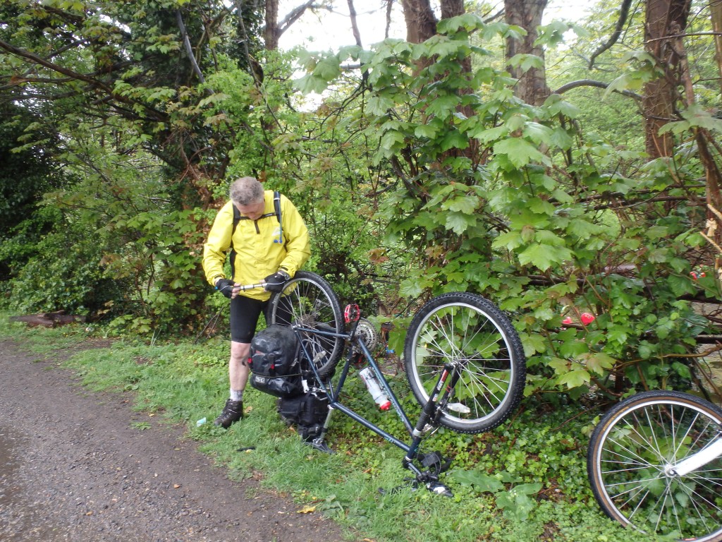 Susan was rapidly disappearing into the distance when I finally stopped to fix it.. The good news at this point was the rain had become torrential rain. BOLLOCKS