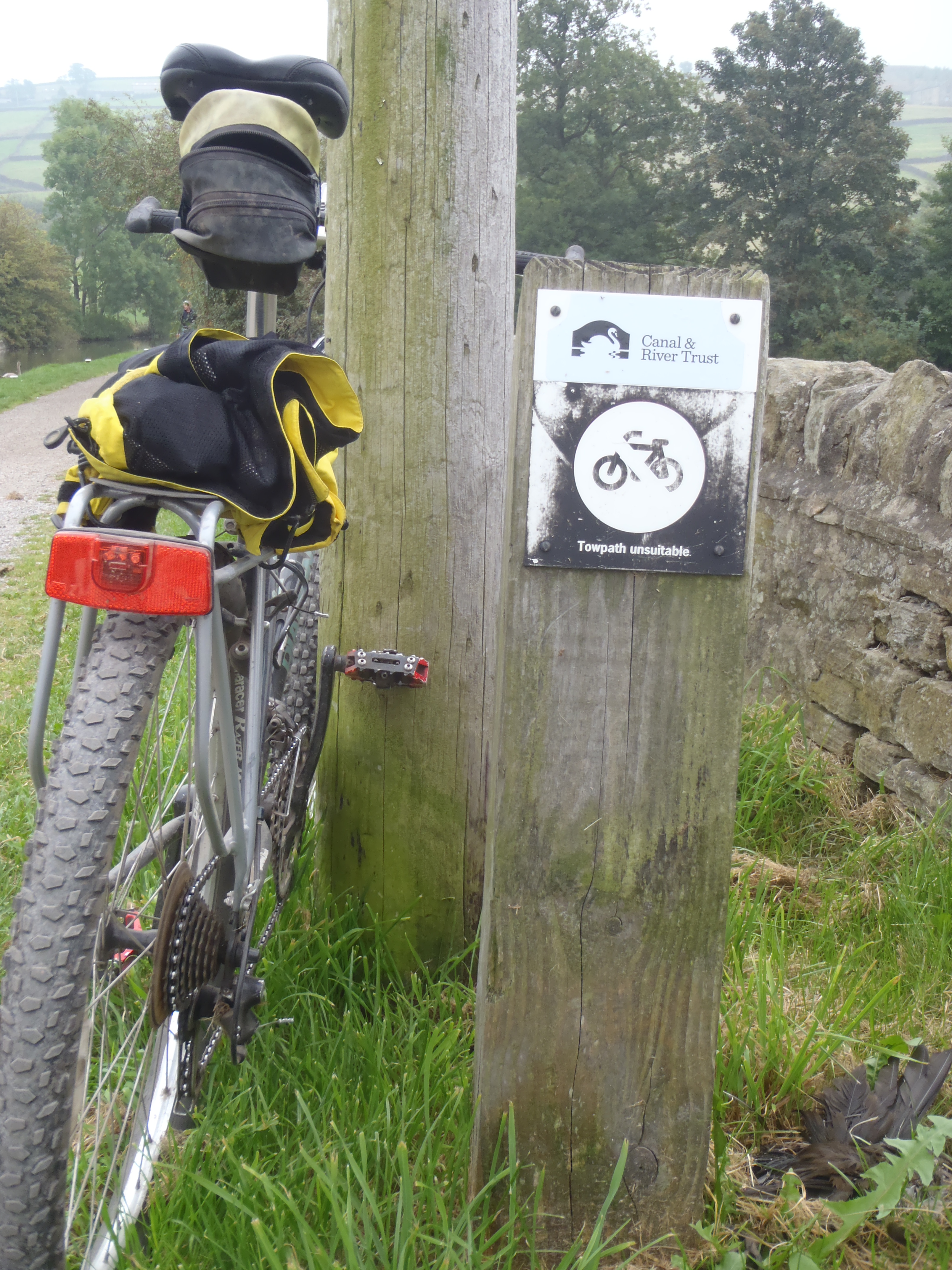 Another grey morning and it had rained quite a lot overnight but today’s plan was again pretty simple, about 40 miles at a leisurely pace, breakfast in Skipton where we would leave the canal to check that Susan’s car was still where she had left it and I had decided I was going to leave the panniers. We had taken out the pump and inner tubes so we would not need anything in them for the rest of the trip. On into Leeds then back to Skipton by train to stay with Susan’s friends Julia and Ian at the Napiers.