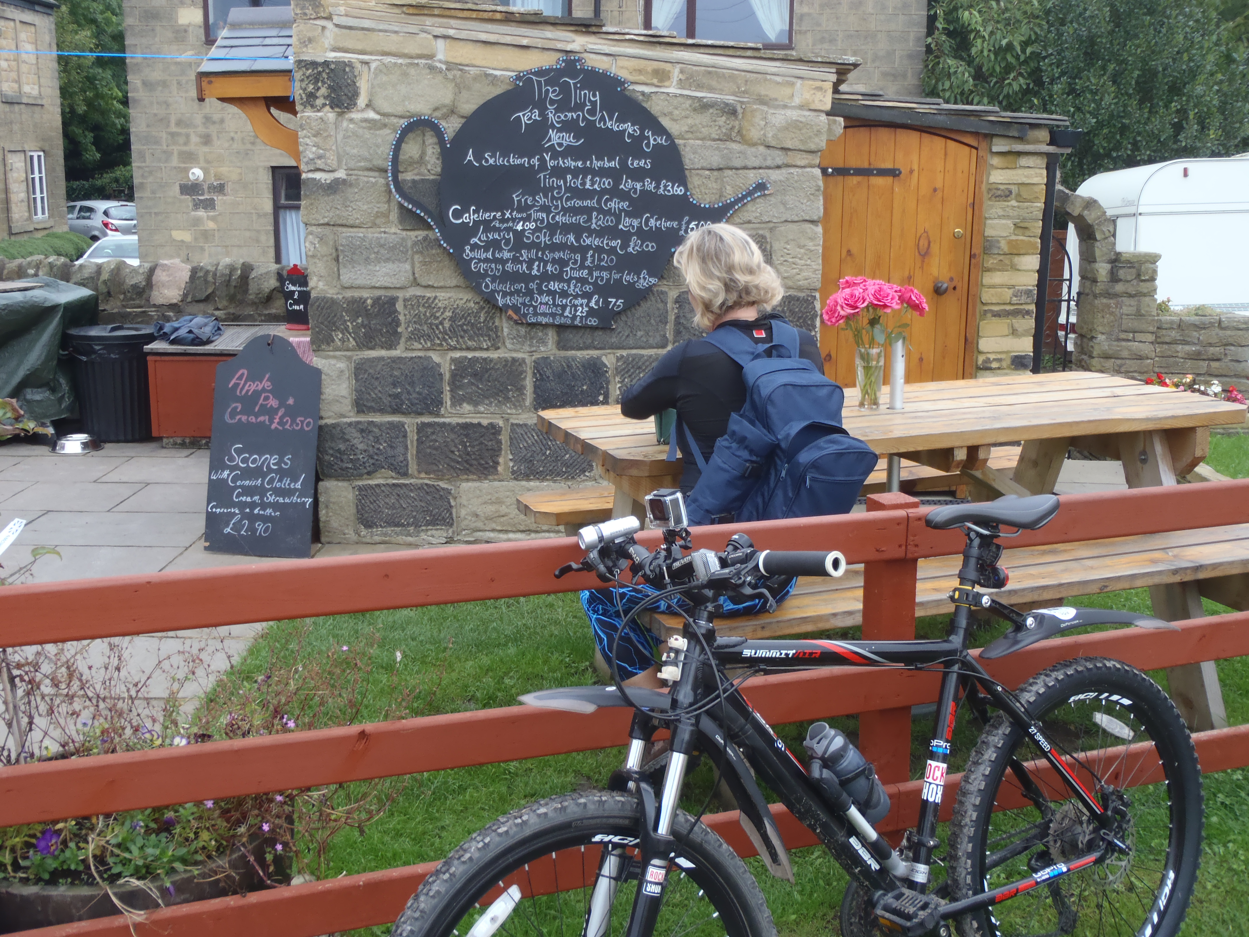 By now even I could tell Susan was really really not happy she was slowing down and we were stopping more frequently so at the next sign of civilisation we decided to stop for a proper rest, an energy drink and a cup of tea. That was just what we needed and we left the tiny tea room refreshed and lucky us, after a slight shower had passed.