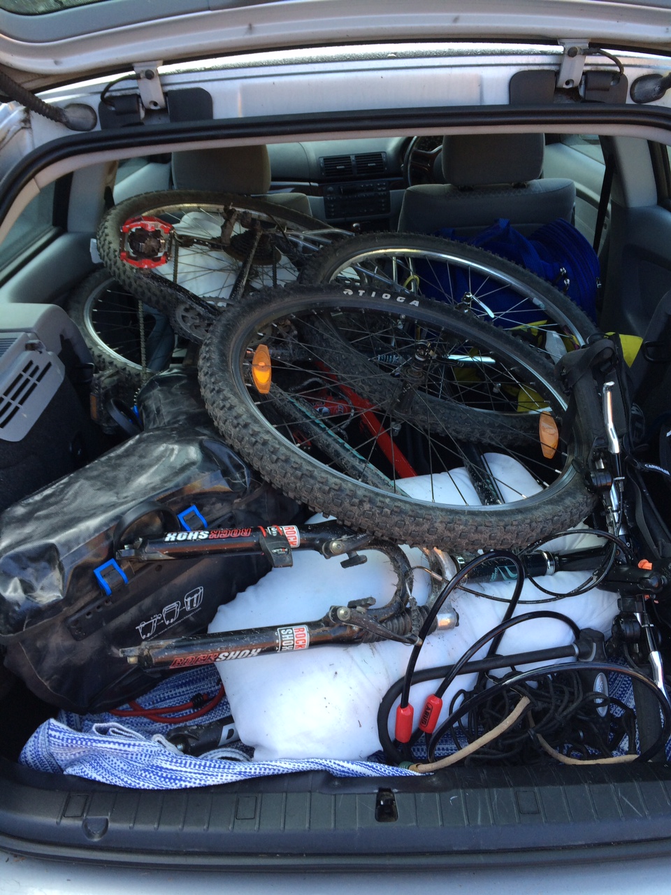 At Skipton we went back to the car took the wheels out of the bikes and placed them carefully in the boot packing cushions and blankets between them so they did not get any more scratched. They had done us proud, mechanically there were no real issues and they had taken quite a pounding.